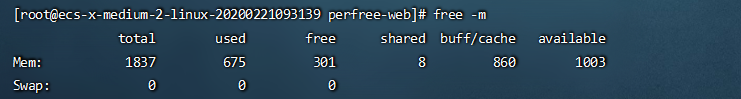 [root@ecs-x-medium-2-linux-20200221093139 perfree-web]# free -m