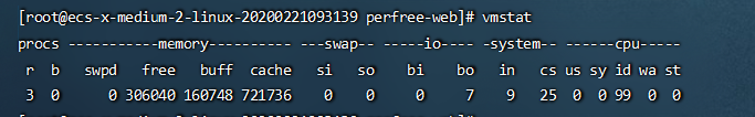 [root@ecs-x-medium-2-linux-20200221093139 perfree-web]# vmstat